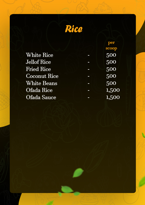 Aunty Rosa Kitchen Menu